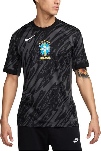 Take your match day attire to another level with this Brazil National Team 2024 Goalkeeper Replica Stadium Jersey from Nike. This jersey features Dri-FIT materials to keep you cool and comfortable all game long. The fresh Brazil National Team graphics and designs will make this your go-to kit your favorite players take the pitch.
