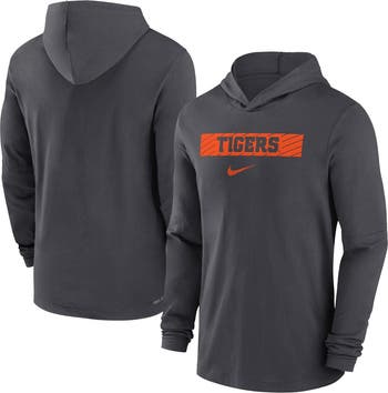 Step out in Clemson Tigers spirit with this Sideline T-shirt from Nike. It features a team wordmark across the front on moisture-wicking Dri-FIT fabric. The attached hood offers extra coverage, perfect for cheering the Clemson Tigers to a win.