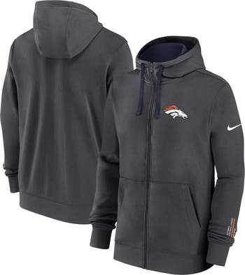 Embrace chilly days in modern Denver Broncos style with this Primetime Club Full-Zip Hoodie by Nike. Soft fleece fabric creates cozy warmth, while an adjustable scuba hood provides customizable coverage. Front pockets keep your hands warm and essentials easily accessible in this Denver Broncos hoodie.