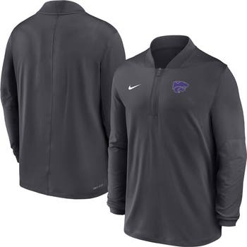 Support your team with this Kansas State Wildcats Dri-FIT Half-Zip Pullover from Nike. Its Dri-FIT technology wicks away moisture, ensuring you stay dry and comfortable whether you're working out or cheering on the Kansas State Wildcats. The embroidered rubberized team logo applique at the left chest proudly displays your team loyalty, making it the perfect addition to your game-day wardrobe.