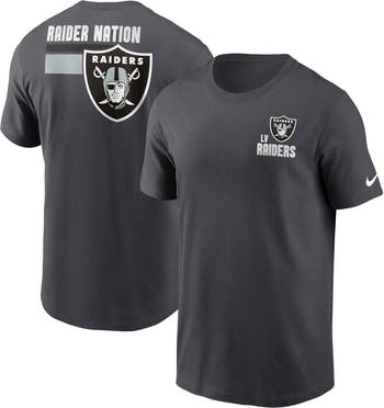 The Men's Nike Anthracite Las Vegas Raiders Blitz Essential T-shirt is the perfect way to show unwavering support for the Las Vegas Raiders. Made from soft cotton, this T-shirt features screen-printed graphics that proudly display the Raiders logo and team name. The crew neck and relaxed fit provide a comfortable and stylish look, making it perfect for game day or any day you want to show your Raiders pride.
