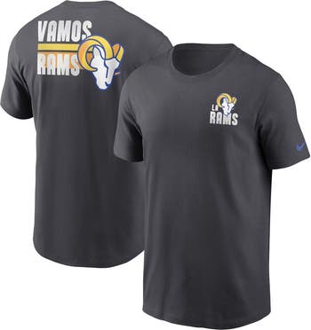 The Nike Anthracite Los Angeles Rams Blitz Essential T-shirt is the perfect way to show your support for the Rams. Made from soft cotton, this tee features screen-printed graphics that proudly display the Rams logo. The crew neck and relaxed fit provide a comfortable feel, while the sizing tip ensures a perfect fit. Whether you're cheering on the Rams at the stadium or just showing your team spirit, this T-shirt is a must-have for any fan.