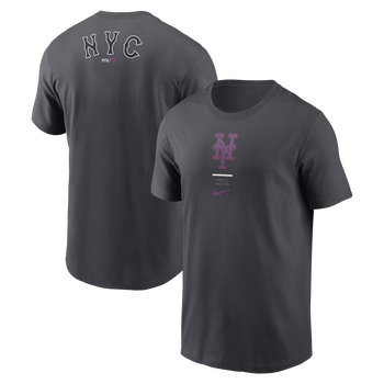 Spotlight the uniqueness of where the New York Mets reside with this City Connect 2-Hit T-Shirt by Nike. The original design printed on the front and back reflects the team's distinct culture and community pride. Lightweight jersey fabric keeps you comfortable all day in this locally inspired New York Mets tee.