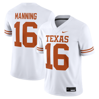 Witness the greatness of the Texas Longhorns with this Arch Manning Nike Road Game Football Jersey. Designed with breathable double pique fabric and Dri-FIT technology, this jersey keeps you cool and comfortable while showcasing your team pride. Made with at least 50% recycled content, this standard-fit jersey features screen-printed graphics and an embroidered team logo, so you can cheer on the Texas Longhorns in sustainable style.