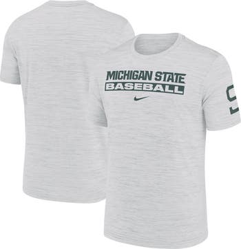 Stay comfortable during the heat of baseball season by wearing this Michigan State Spartans Velocity Baseball Wordmark Stack Performance T-Shirt from Nike. It features sweat-wicking Dri-FIT technology to keep you cool and dry all day. A cross-dyed pattern highlights the Michigan State Spartans details printed on the chest and sleeve.