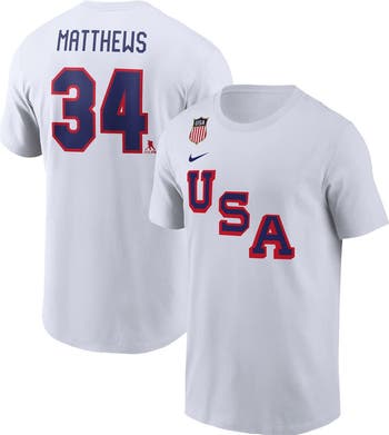 Gear up and represent your favorite hockey phenom with this Auston Matthews Name & Number T-Shirt from Nike. It features bold Auston Matthews and US Hockey graphics that let everyone know you're ready to see the star defenseman represent his country at the 2026 tournament. The lightweight cotton material and crew neck design will keep you comfortable all day long. Root for US Hockey in style with this one-of-a-kind tee.