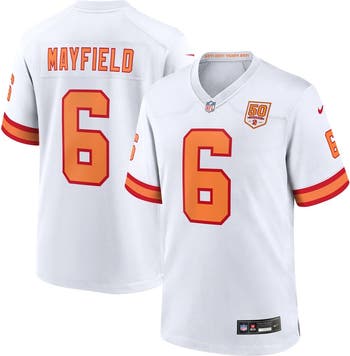 Celebrate five decades of Tampa Bay Buccaneers football with this striking Baker Mayfield Game Jersey from Nike. This jersey embodies the spirit of the franchise with its classic design and commemorative 50th Season details. Featuring a loose fit for comfortable movement, mesh side panels for breathability, and stitched NFL Shield at the collar, this jersey is built for both performance and pride. The heat-sealed name, numbers, and team details, along with a satin woven jock tag, complete this authentic piece, making it a must-have for any dedicated Tampa Bay Buccaneers fan looking to honor the team's past and present.