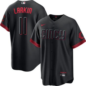 Represent the city and state the Cincinnati Reds call home all while honoring the past that has paved the way for the future of the organization. This Barry Larkin City Connect Replica Player Jersey from Nike features nods to the city of Cincinnati's seal with the phrase "Juncta Juvant" in addition to a leaf from Ohio's state tree, the buckeye, on the collar. This jersey also looks back on the history of the team with the five stripes on the sleeves and logo to represent the Cincinnati Reds' five World Series titles.