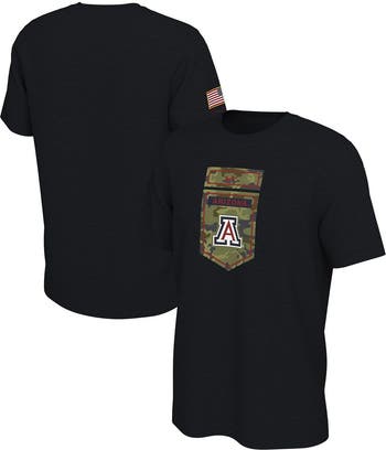 The Men's Nike Black Arizona Wildcats Veterans Camo T-shirt is a must-have for loyal Arizona Wildcats fans. Show your support with this stylish, comfortable tee featuring screen-printed graphics that proudly display the team's iconic logo. Made from durable cotton, this t-shirt is perfect for game day or any day you want to show your Arizona Wildcats pride.