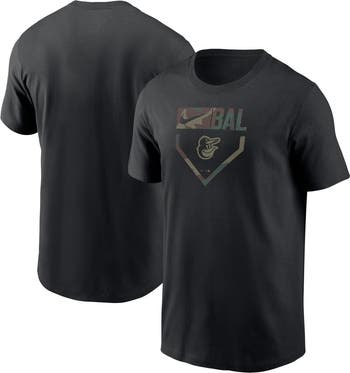 The Men's Nike Black Baltimore Orioles Camo T-shirt is a must-have for devoted Baltimore Orioles fans. Its bold camo print and screen-printed graphics proudly display unwavering support for the Orioles. Made from soft cotton, this crew neck t-shirt offers comfort and breathability, making it perfect for cheering on your team at the stadium or showing your Orioles pride wherever you go.