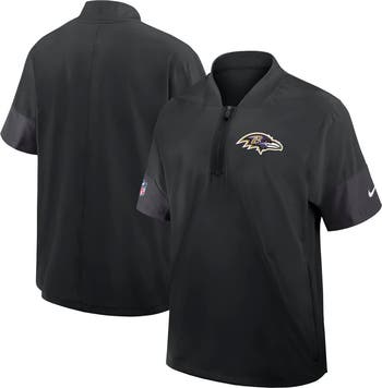 Look like one of the Baltimore Ravens coaching staff in this Sideline Short Sleeve Quarter-Zip Coach Jacket by Nike. Crafted with water-repellent taffeta fabric, it offers lightweight, breathable coverage from the elements. Zippered side seams allow for easy use, making this Baltimore Ravens jacket perfect for layering in changing weather conditions.