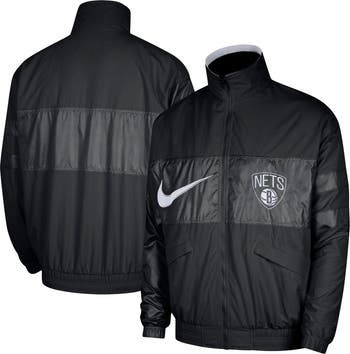 Stand out on game day by sporting this Nike Courtside Versus Capsule full-zip. It features a bold Brooklyn Nets design with noticeable team graphics for a spirited layer. A mock neck offers a bit of extra coverage in case temperatures drop.