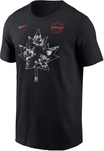 Elevate your everyday wardrobe with this sleek Canada Soccer Maple Leaf T-Shirt from Nike. Crafted from soft cotton with a midweight feel, this tee provides all-day breathability. Featuring screen-printed Canada Soccer graphics and a durable rib-knit collar, this shirt is a total game-changer in fan apparel. With a standard fit that drapes perfectly, this tee is sure to be your new go-to.