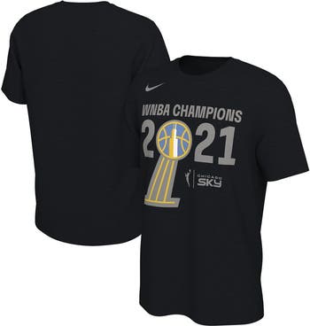 Celebrate the Chicago Sky's historic 2021 WNBA Championship with the Men's Nike Black Chicago Sky 2021 WNBA Champions Trophy Banner T-Shirt. This commemorative tee features screen-printed graphics that proudly display the Chicago Sky's championship banner, honoring their remarkable achievement. Made from soft cotton, this T-shirt offers comfort and breathability, making it perfect for showing your support for the Chicago Sky and the WNBA.