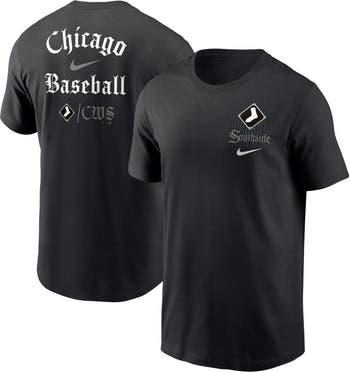The Men's Nike Black Chicago White Sox City Connect 2-Hit T-Shirt is a must-have for any true Chicago White Sox fan. With its bold screen print graphics, this shirt proudly displays your unwavering support for the South Side's beloved team. Whether you're cheering from the stands or simply showing your White Sox pride, this shirt is the perfect way to represent your favorite MLB franchise.