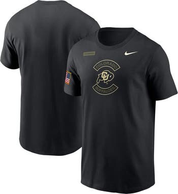 Show your support for the Colorado Buffaloes and the brave men and women of the U.S. Military with this 2025 Military Appreciation Dri-FIT T-Shirt from Nike. The military-inspired design, screen-printed with the Colorado Buffaloes logo, is complemented by a U.S. flag patch on the right sleeve, mirroring the tradition of military uniforms. The jersey fabric has a lightweight feel to ensure a comfortable fit, while the Dri-FIT technology wicks away moisture, keeping you cool and dry. This standard-fit tee is a perfect way to display your team pride and honor our service members with a unique design that shows you're ready to tackle any challenge.