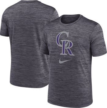Celebrate your unwavering support for the Colorado Rockies with the Men's Nike Black Colorado Rockies Logo Velocity Performance T-shirt. Its screen-printed graphics proudly display the Rockies logo, making it the perfect way to show your allegiance to the team. Crafted from breathable polyester with Dri-FIT technology, this performance t-shirt keeps you comfortable and dry, whether you're cheering from the stands or hitting the gym.