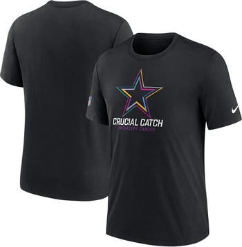 Intercept cancer with the NFL Crucial Catch Collection. In the spirit of the various cancer ribbon colors, this Nike T-Shirt features your Dallas Cowboys logo on the front with a multi-colored striping pattern. Join the Dallas Cowboys players as they wear this gear on the sideline during the month of October! The NFL does not profit from the sale of Crucial Catch products. Charitable contributions are awarded by the NFL Foundation to the American Cancer Society. For more information, please visit www.NFL.com/CrucialCatch.