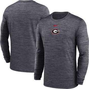 Sport the same look as the Georgia Bulldogs with this 2025 Sideline Velocity Performance Long Sleeve T-Shirt by Nike. It features sweat-wicking Dri-FIT technology to keep you dry and comfortable, whether you're at the game or staying active. The cross-dyed pattern adds visual interest to this lightweight Georgia Bulldogs tee.
