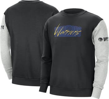 The Nike Black/Heather Gray Golden State Warriors Courtside Versus Force & Flight Pullover Sweatshirt is the perfect way to show your support for the Golden State Warriors. This midweight sweatshirt is made from a soft cotton and polyester blend, featuring embroidered graphics and a fleece lining for added warmth. The pullover design allows for easy layering, while the rib-knit cuffs and waistband ensure a comfortable fit. Whether you're cheering on the Warriors from the stands or relaxing at home, this sweatshirt will keep you warm and stylish.