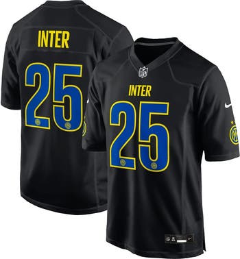 American football meets the original football with this Inter Milan Game Jersey from the 2025 Soccer x NFL collection. Modeled after the gear worn by NFL players, this Nike jersey features Inter Milan graphics so you can represent your favorite Serie A team in classic gridiron style. With a loose fit that's designed for movement and mesh side panels for extra breathability, you'll be able to stay cool and comfortable as you enjoy all the soccer action this summer.