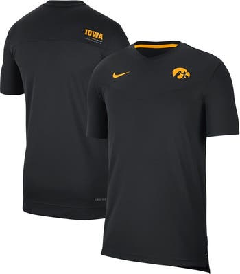 The Men's Nike Black Iowa Hawkeyes 2022 Coaches UV Performance T-shirt is the perfect way to show your support for the Iowa Hawkeyes. Made from lightweight polyester, this T-shirt features Dri-FIT technology to keep you cool and comfortable all game long. Heat-sealed graphics ensure your Iowa Hawkeyes pride never fades, while the droptail hem with side splits provides a stylish and comfortable fit. Whether you're cheering on the Hawkeyes from the stands or just showing your support around town, this T-shirt is a must-have for any Iowa Hawkeyes fan.