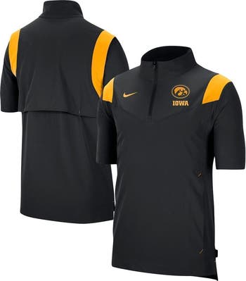 Wearing this Nike Coach quarter-zip pullover jacket makes you feel like you're on the Iowa Hawkeyes sidelines. Its light material and short sleeves ensure you'll be able to keep cool, even if the game comes down to the wire. This jacket's shoulder stripe design, Iowa Hawkeyes graphics and Nike swoosh combine for a sophisticated gridiron finish.
