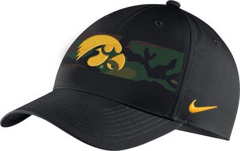 Show that you're a dedicated Iowa Hawkeyes supporter with a bit of rugged style by snagging this Miltary Camo Legacy91 adjustable hat from Nike. Embroidered Iowa Hawkeyes graphics pop against the printed camo pattern, and the embroidered American flag on the right side crown emboldens this hat with a bit of patriotic pride. The hook-and-loop closure makes securing the perfect fit quick and easy.