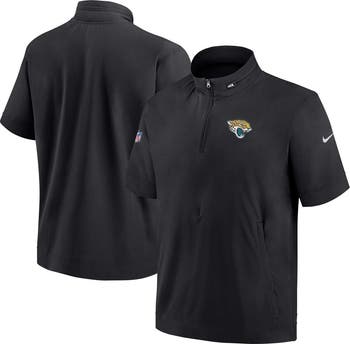 Look like you dressed to direct Jacksonville Jaguars players in this Sideline Coach quarter-zip jacket from Nike. Similar to the official Jacksonville Jaguars gear, it features side zippers for built-in ventilation, a zippered pouch pocket to secure essentials and a hood that tucks away conveniently. The blended material stretches four ways for maximum flexibility.