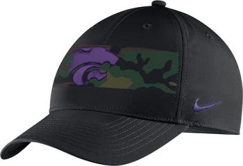 Show that you're a dedicated Kansas State Wildcats supporter with a bit of rugged style by snagging this Miltary Camo Legacy91 adjustable hat from Nike. Embroidered Kansas State Wildcats graphics pop against the printed camo pattern, and the embroidered American flag on the right side crown emboldens this hat with a bit of patriotic pride. The hook-and-loop closure makes securing the perfect fit quick and easy.