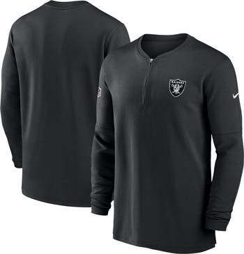 The Men's Nike Black Las Vegas Raiders 2023 Sideline Performance Long Sleeve Tri-Blend Quarter-Zip Top is the perfect way to show your support for the Las Vegas Raiders. This midweight top is made from a blend of recycled polyester, cotton, and organic cotton, making it both comfortable and sustainable. The embroidered applique and screen print graphics proudly display the Las Vegas Raiders logo, while the 1/4-zip closure and side splits at the bottom hem provide a comfortable and stylish fit. Whether you're cheering on the Raiders from the stands or just showing your support around town, this top is sure to turn heads.
