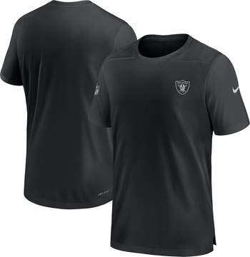 The Men's Nike Black Las Vegas Raiders Sideline Coach Performance T-shirt is the perfect way to show your support for the Las Vegas Raiders. Made from recycled polyester, this T-shirt is both comfortable and durable, perfect for cheering on your team from the stands or at home. Heat-sealed graphics and side splits at the waist hem add a touch of style, while Dri-FIT technology will keep you cool and dry all game long. Whether you're a lifelong Raiders fan or just getting started, this T-shirt is a must-have for any fan of the Silver and Black.
