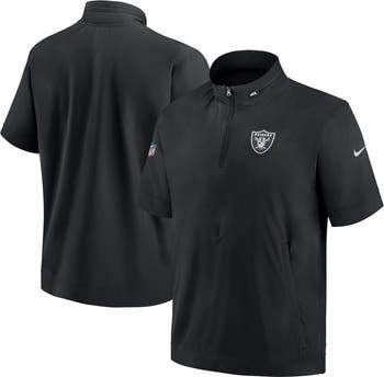 Look like you dressed to direct Las Vegas Raiders players in this Sideline Coach quarter-zip jacket from Nike. Similar to the official Las Vegas Raiders gear, it features side zippers for built-in ventilation, a zippered pouch pocket to secure essentials and a hood that tucks away conveniently. The blended material stretches four ways for maximum flexibility.