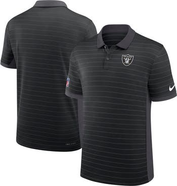 Look ready to join the Las Vegas Raiders on game day in this Sideline Victory Stripe Performance Polo by Nike. It's crafted from breathable pique fabric and features sweat-wicking Dri-FIT technology to keep you cool and dry. Whether you're cheering from the stands or showing team spirit at work, the classic fit of this Las Vegas Raiders polo provides a comfortable feel.
