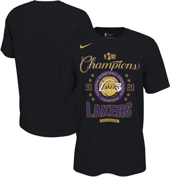 Celebrate the Los Angeles Lakers' triumphant 2020 NBA Finals victory with the Men's Nike Black Los Angeles Lakers 2020 NBA Finals Champions Locker Room T-Shirt. This commemorative tee proudly showcases screen-printed graphics that boldly display the Lakers' championship triumph, making it an essential addition to any loyal fan's collection. Unwavering support for the Los Angeles Lakers and commemorate their historic achievement with this exclusive T-shirt.