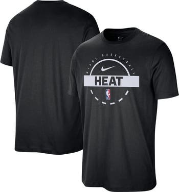 Elevate your training regimen with this Miami Heat Authentic Practice T-Shirt from Nike. The rib-knit collar and tagless design will keep you comfortable whether you're hitting the court or relaxing at home. The printed team graphics, NBA Shield, and Nike Swoosh on the front display your Miami Heat Nike pride in style.