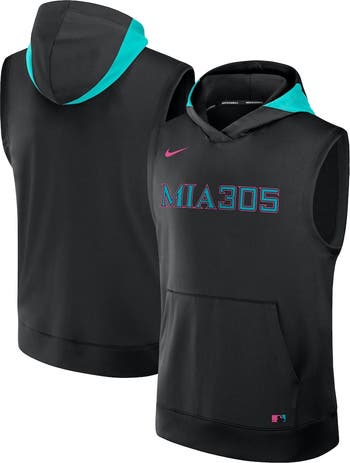 A team in one of the flashiest cities in the world needs a design to go with it. This Miami Marlins Authentic Collection Sleeveless Performance Pullover Hoodie is unapologetically Miami, featuring bright Art Deco colors and graphics that are sure to stand out for your next day at the ballpark. Complementing the bright colors is a splash of teal as a nod to the iconic design of the original Florida Marlins. This Nike City Connect piece is the perfect way to bridge the past and present while looking to the bright future of the Fish.