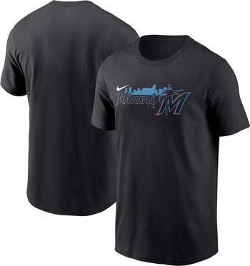The Nike Black Miami Marlins Local Team Skyline T-shirt is the perfect way to show your support for the Miami Marlins. Made from soft cotton, this comfortable tee features a crew neck and screen-printed graphics that proudly display the Miami Marlins logo and skyline. Whether you're cheering on the Marlins at the stadium or just showing your team spirit around town, this t-shirt is a must-have for any fan.