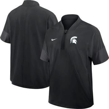 Look like one of the Michigan State Spartans coaching staff in this 2025 Sideline Short Sleeve Quarter-Zip Coach Jacket by Nike. Crafted with water-repellent taffeta fabric, it offers lightweight, breathable coverage from the elements. Zippered side seams allow for easy use, making this Michigan State Spartans jacket perfect for layering in changing weather conditions.