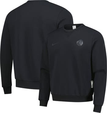Stay comfortable while representing your favorite NBA team in this Minnesota Timberwolves Authentic Standard Issue Travel Dri-FIT Sweatshirt from Nike. Crafted with Dri-FIT technology, this midweight pullover wicks away moisture to keep you dry on the move. The relaxed, boxy fit provides a loose and roomy feel across the chest, shoulders, and body, but the rib knit cuffs and hem help you move as freely as you want for the best of both worlds.