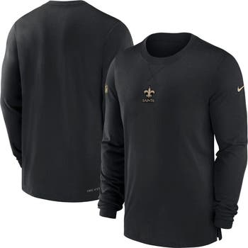 Represent your beloved New Orleans Saints with the Men's Nike Black New Orleans Saints 2023 Sideline Performance Long Sleeve T-Shirt. This official New Orleans Saints gear features embroidered graphics that proudly display your team allegiance. Its crew neck and side splits at the hem provide a comfortable fit, perfect for cheering on the Saints from the stands or showing your support off the field. Made from breathable polyester with Dri-FIT technology, this long sleeve t-shirt wicks away sweat, keeping you cool and dry throughout the game.
