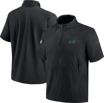 Men's Nike Black New York Jets 2024 Sideline Coach Short Sleeve Half-Zip Hoodie Jacket