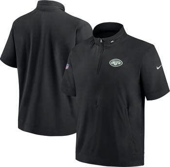 Look like you dressed to direct New York Jets players in this Sideline Coach quarter-zip jacket from Nike. Similar to the official New York Jets gear, it features side zippers for built-in ventilation, a zippered pouch pocket to secure essentials and a hood that tucks away conveniently. The blended material stretches four ways for maximum flexibility.