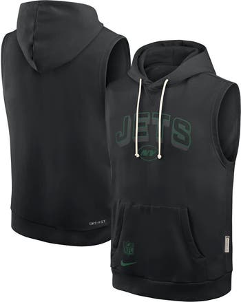 Stay warm and dry when you wear this New York Jets Sideline Performance Sleeveless Pullover Hoodie by Nike. It features heavyweight fleece fabric for a cozy feel and sweat-wicking Dri-FIT technology. An adjustable hood and pouch pocket give you additional coverage in this New York Jets hoodie.
