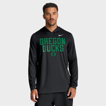 Men's Nike Black Oregon Ducks 2025 Sideline Performance Long Sleeve Hoodie T-Shirt