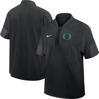 Look like one of the Oregon Ducks coaching staff in this 2025 Sideline Short Sleeve Quarter-Zip Coach Jacket by Nike. Crafted with water-repellent taffeta fabric, it offers lightweight, breathable coverage from the elements. Zippered side seams allow for easy use, making this Oregon Ducks jacket perfect for layering in changing weather conditions.