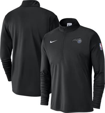 Embrace your Orlando Magic pride with the Nike Courtside Performance Half-Zip Top. Constructed from lightweight knit fabric, this top not only provides a soft touch but also performs like breathable technical mesh. The built-in Dri-FIT technology actively wicks away moisture, keeping you dry and comfortable as you cheer on your favorite team. Whether you're at the arena or walking around town, the team logo applique on the left chest proudly showcases your allegiance to the Orlando Magic.