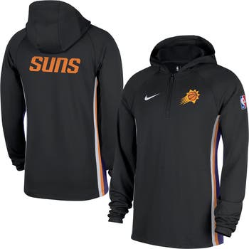 Rep your Phoenix Suns with this Authentic On Court Zone Quarter-Zip Dri-FIT Hoodie Jacket from Nike. Featuring Dri-FIT technology that wicks away moisture, this midweight pullover is perfect for moderate temperatures, keeping you comfortable whether you're on the court or cheering from the stands. The raglan sleeves offer greater freedom of movement, and the front pouch pocket provides convenient hands-free storage.