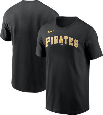 The Men's Nike Black Pittsburgh Pirates Team Wordmark T-Shirt is a must-have for loyal Pittsburgh Pirates fans. Crafted from soft cotton, this tee ensures comfort while showcasing a bold screen print of the iconic Pirates logo. Proudly display your allegiance to the team, whether cheering from the stands or showing support. This t-shirt embodies the spirit of the MLB and represents the Pittsburgh Pirates with unwavering loyalty.