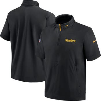 Men's Nike Black Pittsburgh Steelers 2024 Sideline Coach Short Sleeve Half-Zip Hoodie Jacket